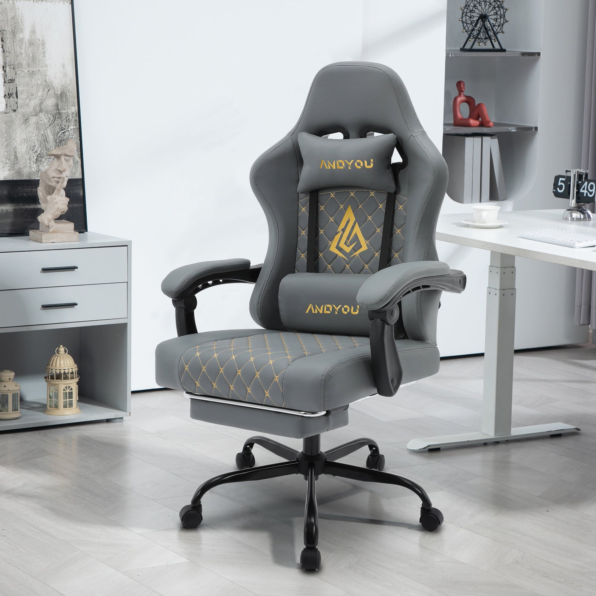 ANDYOU PU Leather Computer Gaming Chair - Comfortable and Adjustable Office Chair, Grey